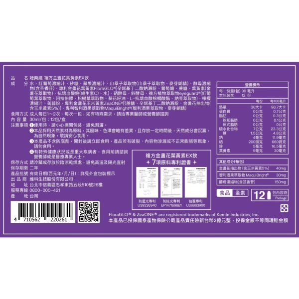 ▸ 若你曾經吃過他牌葉黃素卻無感、或長時間使用科技產品的人、或補充葉黃素維持晶亮水潤兼顧養顏美容效果的人、或年長者健康維持等,你可以食用婕樂纖 複方金盞花葉黃素EX飲,具有歐美7大專利,讓你感受晶亮水潤的秘密武器。