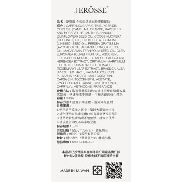得到世界金牌的身體油-婕樂纖小白瓶(全效賦活絲絨身體精華油)